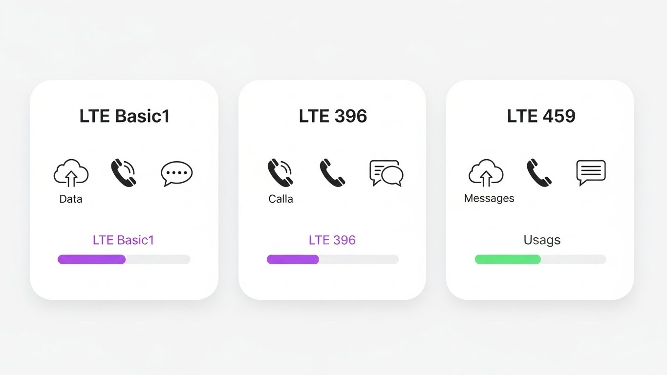 ① 번호만 필요 → LTE 기본1 / ② 일상 사용 → LTE 396 / ③ 넉넉한 사용 → LTE 459